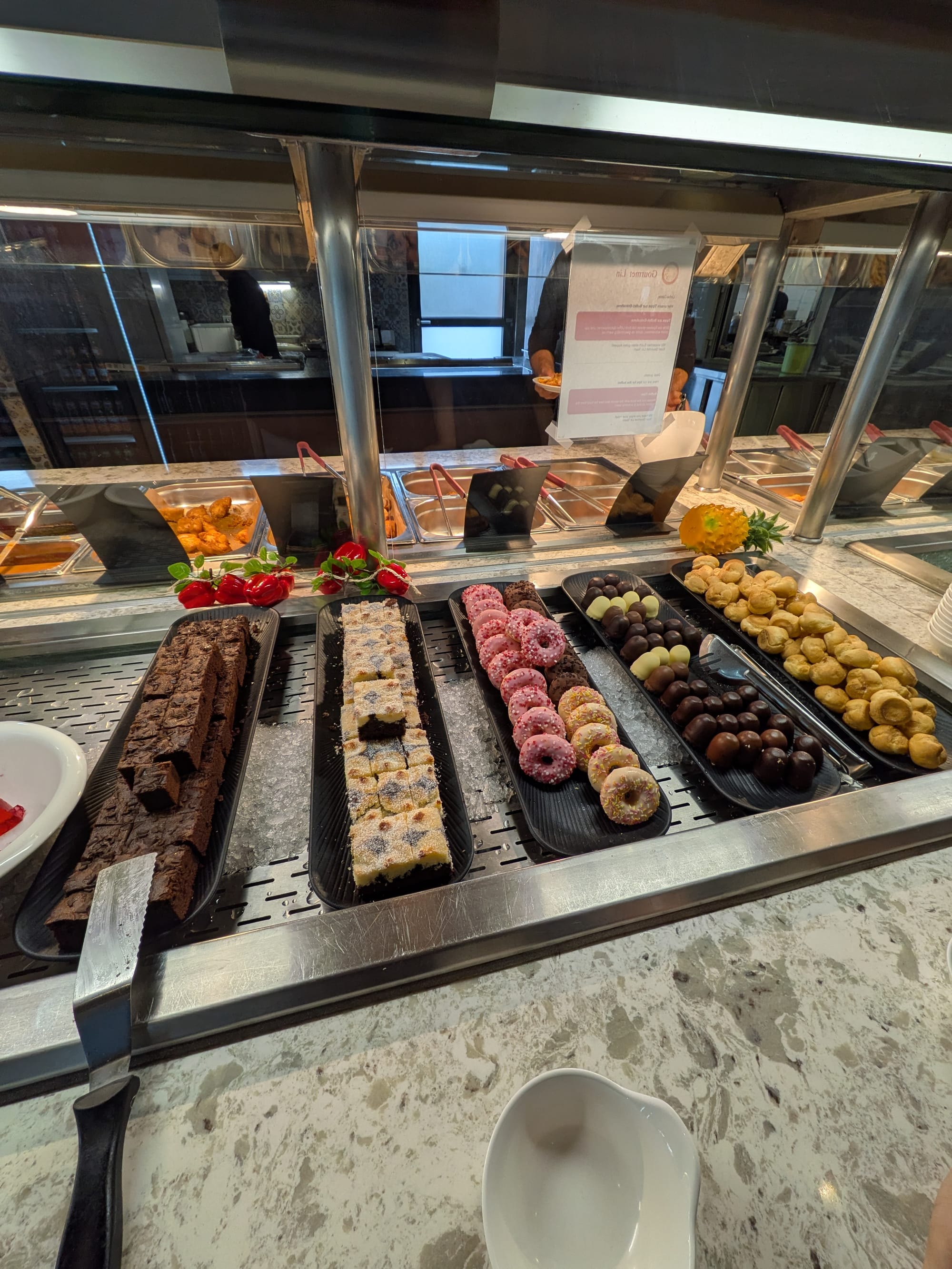 Wir hatten, um es direkt zu sagen, reichlich Auswahl am Buffet: von gebackenen Bananen über Gemüsepfannen, geschmortem Gemüse, veganem Sushi, aus Avocado und Gurken, diverse Soßen, Pommes und, fürs Klischee allerlei Salat Optionen. Die Atmosphäre erinnert daran, durch einen Tempel zu gehen, mit Drachen als Dekoration und chinesischer Musik. Das alles macht den Geschmack am Ende sogar noch ein wenig besser. Die Stimmung ist gediegen, dennoch wird die Kultur vermittelt.